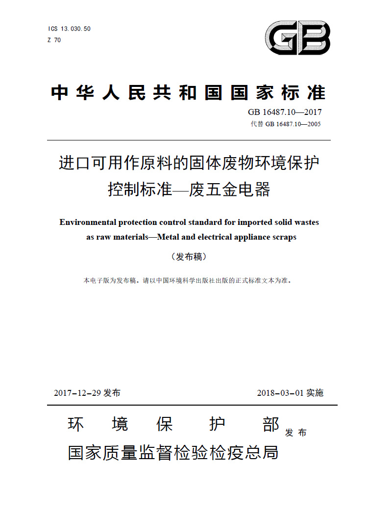 ( GB 16487.10—2017代替GB 16487.10—2005 2018-03-01實施)