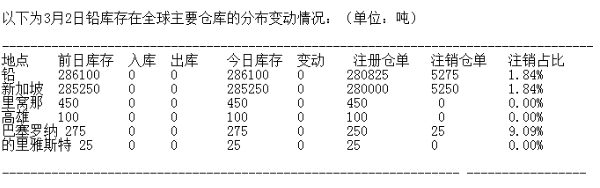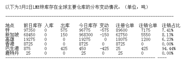 LME 3月2日有色金屬庫存分布情況