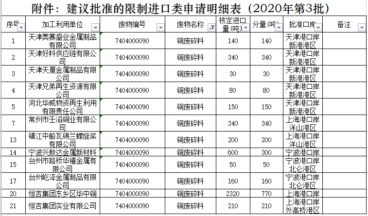 昨日,2020年第三批廢銅、廢鋁、廢鋼鐵批文公布。其中,廢銅核定進(jìn)口量總計(jì)4620噸,廢鋁核定進(jìn)口量總計(jì)1440噸,廢鋼鐵核定進(jìn)口量2670噸。