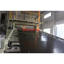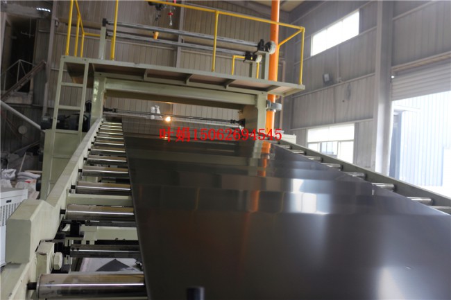 加壓式密煉機 → 自動不銹鋼提升機→ 強制喂料機 → GLD單螺桿 →2500mm成型模具 →三輥擠壓表面處理→牽引機→板材電暈處理 → 切割機 → 堆放 →油壓發泡機