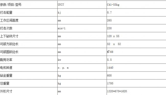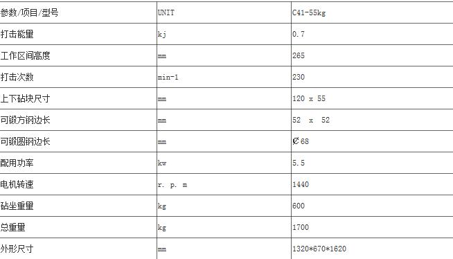 | 產(chǎn)品規(guī)格: | C41-55KG分體式空氣錘 | ||