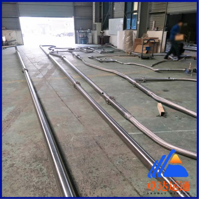 真空軟管主要運用:槽車沖排液體;貯槽與低溫用液設備之間硬連接轉換;真空硬管與低溫用液設備之間的轉換,用于LNG碼頭上、下船和LNG卸車的輸送管,用于超導電纜低溫環境等。