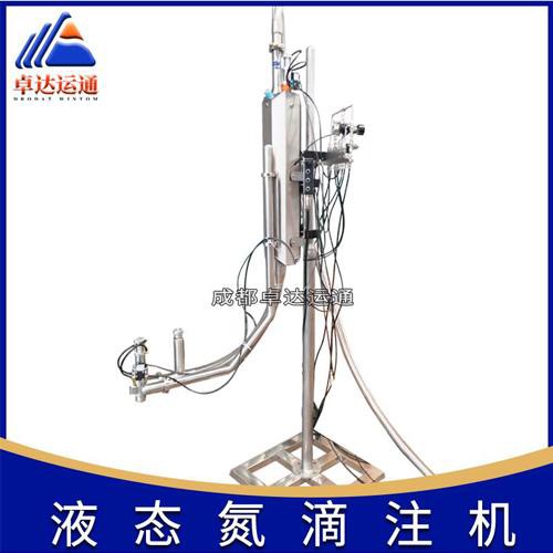 成都卓達運通液氮加注機可以準確地控制液氮量,具有無容器不加氮的能力,PLC可控編程,外形小巧,安裝簡便可以配合任何生產線,全部管路均采用真空液氮絕熱管,可以更大限度的保證低的液氮消耗量無結的操作壞境。