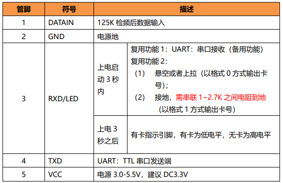 • 該讀卡模塊完全支持EM4001,EM4100,TK4001,TK4100及其125K兼容ID卡片的操作