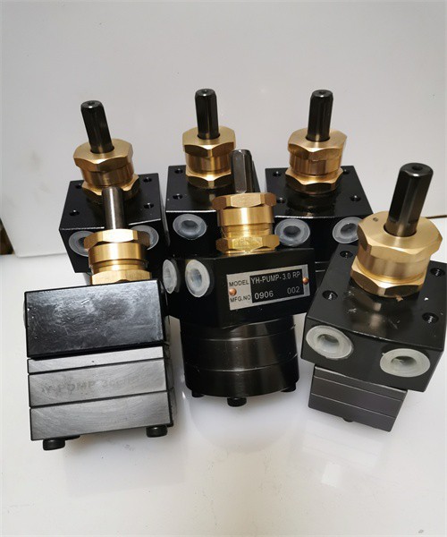 油漆齒輪泵(涂料齒輪泵,油墨泵,PU油漆專用泵)。齒輪泵工作原理:就是兩個尺寸相同的齒輪在緊密配合的8字型泵體內相互嚙合旋轉,齒輪的外徑及兩側與泵體緊密配合,隨著齒的旋轉沿泵體轉動,在齒的嚙合時將油漆輸出油漆在吸入口進入兩個齒輪之間,為滿足各種作業要求,搭配調速電機及變頻器使用;油漆齒輪泵適用于各類顆粒液體涂料、PU,腐蝕性溶劑、油墨、膠水等粘度性涂料輸送,涂料吐出量可根據不同工藝需要而精確控制, 齒輪泵在頻繁更換涂料及顏色等特殊作業場合涂料泵也能快速有效清洗換色