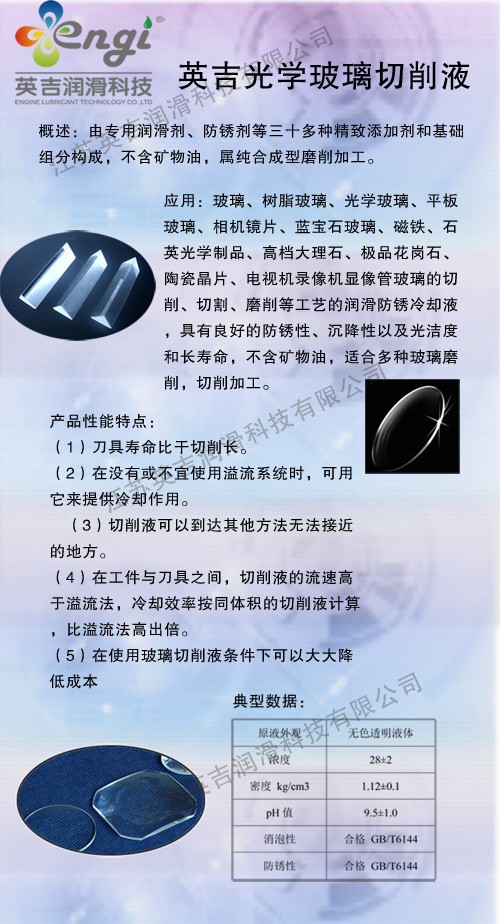 不含亞硝酸鈉,產品不會腐敗,使用壽命長。不起泡,磨削沉淀快,能快速沖走廢屑。可用于高精度的拋光處理和光學鏡片切削、磨削。