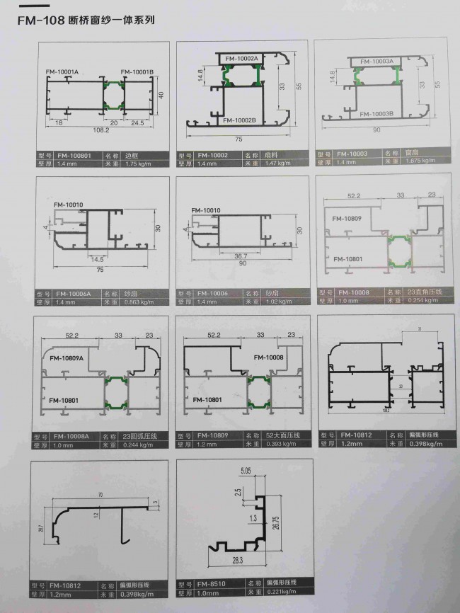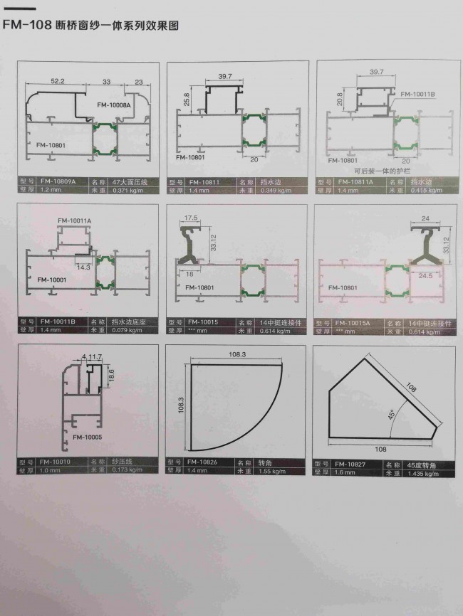 | 產品規格: | 108隔熱斷橋窗紗一體門窗鋁材 | ||