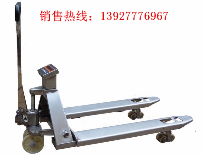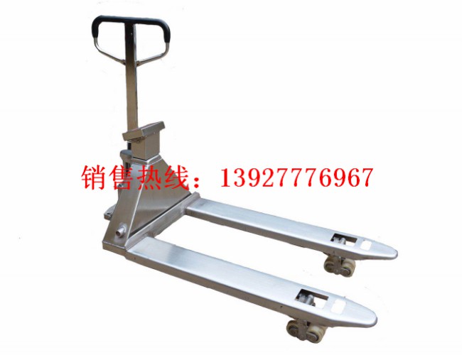 高起升手動液壓叉車秤是一種高起升裝卸和短距離運輸兩用車 ,由于不產生火花和電磁場。特別適用于汽車裝卸及車間、倉庫、碼頭、車站、貨場等地的易燃、易爆和禁火物品的裝卸運輸。該產品具有升降平衡、轉動靈活、操作方便等特點。工作安全可靠。是減勞動強度,提高生產效果,實現實全裝卸的理想工具。