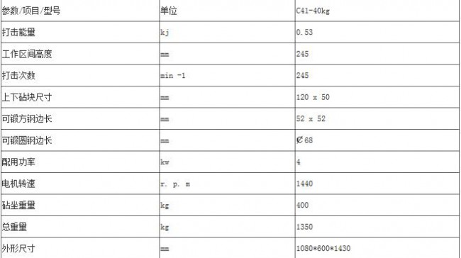 | 產(chǎn)品規(guī)格: | C41-40KG分體式空氣錘 | ||