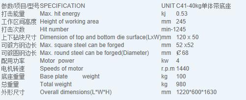 | 產(chǎn)品規(guī)格: | C41-40kg帶底座空氣錘 | ||