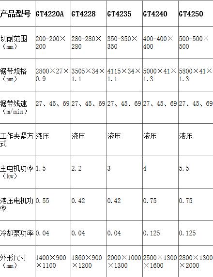 產品規格:GT4228雙立柱臥式金屬帶鋸床