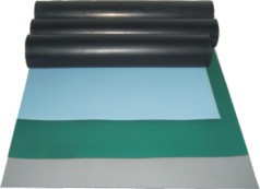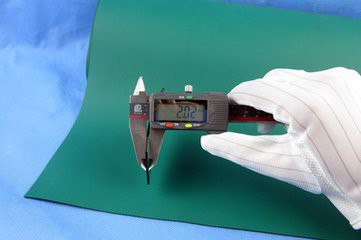 防靜電膠皮主要用抗(導)靜電材料和耗散靜電材料合成橡膠等制做而成。表面層為約0.5mm 厚的耗散靜電層,底層為約1.5mm厚的導電層。常用為2mm雙層復合結構,可供顏色有綠色、 灰色、蘭色、黑色等。 *表面電阻率:106-109Ω *底層電阻率:103-105Ω