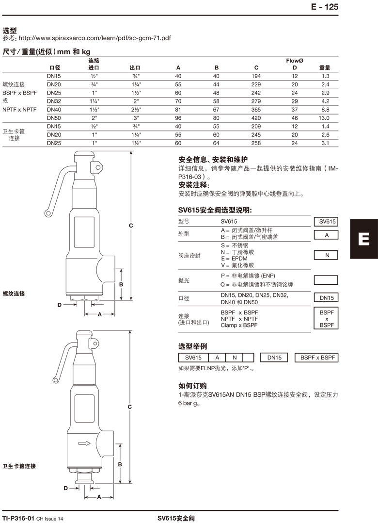SpiraxSarco斯派莎克SV615-AS安全閥的技術(shù)參數(shù):