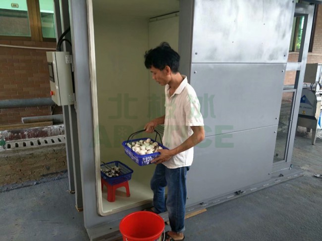 在我們的真空預冷機還未誕生使用之前,我們一直采用的都是傳統的冷庫預冷,然而我們的冷庫預冷有很多弊端;1.預冷時間長(從進庫到出庫需要8-12小時左右) 而預冷機只需要短短的20-30分鐘左右(可以實現打冷裝車出售) 2預冷效果:冷庫預冷是靠熱傳遞而實現的預冷效果;要想菜心溫度達到理想的目標值,那么這個預冷過程是由外向內的一個過程,散葉的蔬菜到沒多大問題,而遇到甘藍.包菜.娃娃菜等包得比較緊的蔬菜,就算預冷到8-12小時也不一定能達到目標值,就算達到目標溫度,時間肯定會延長,從而菜的表皮也可能會有不同程度的凍傷情況。 而真空預冷機是靠真空預冷的,當我們的物體處于一個密閉的空間時,靠真空泵不斷把里面空氣吸走,當真空箱體達到負壓的時候,我們水的蒸發點就會降低,從而通過蒸發蔬菜葉片上的水分和不斷吸走蔬菜縫隙中的熱量而達到預冷效果;由于這一過程處于真空狀態下,可以殺菌和抑制細菌生長,修復機械傷等。3功耗:冷庫制冷面積大,預冷時間長,耗電量不言而喻肯定很大。而真空預冷機面積相對小,預冷時間快,儲存無需長時間開啟冷庫,或者可以直接發貨,可以大大節約用電量。 機動性:冷庫是不能移動,而真空預冷機不一樣,它可以什么地方需要出現在什么地方。