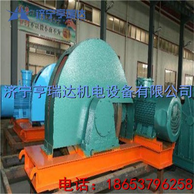 JWB型無極繩絞車系統(tǒng)配置有主機、張緊裝置、梭車、尾輪、壓繩輪、托繩輪和轉(zhuǎn)向裝置等。主機由電動機、減速箱、傳動齒輪、摩擦輪、制動器、支架及底座等部分組成。電動機選用隔爆型三相異步電動機、功率為22~160KW、根據(jù)需要可配置雙速電機。減速箱具有機械變速功能、可實現(xiàn)快慢兩種速度、快慢速比在2倍左右。傳動齒輪采用漸開線圓柱齒輪、開式齒輪傳動,傳動平穩(wěn)。
