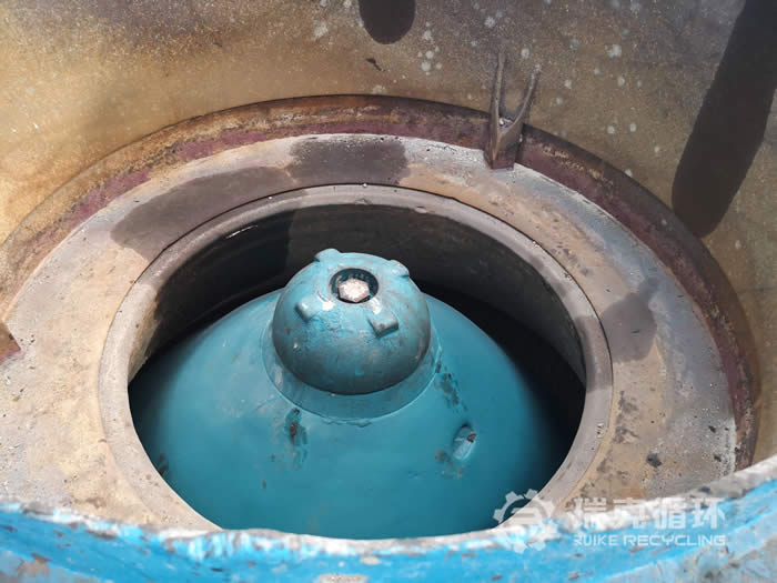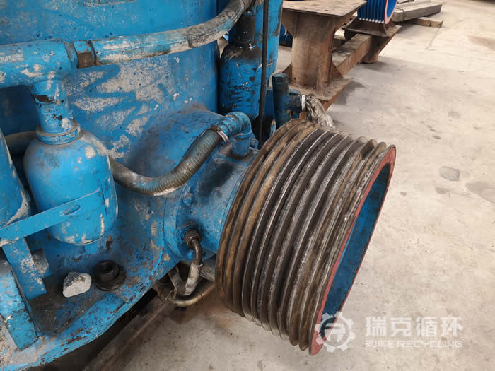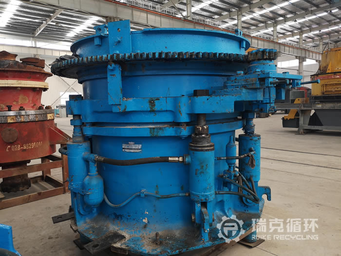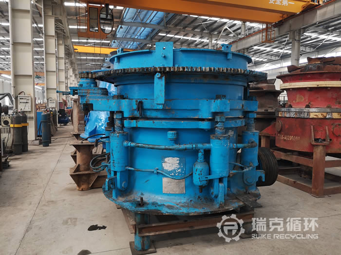 該臺HMP220多缸圓錐破碎機是我公司銷售人員2019年1月在山東某地回收的,回收之前設備還沒拆除,我公司技術人員對設備檢查之后又讓設備進行了運行,沒有發現比較明顯的損壞之后準予回收。在我公司車間技術人員把該設備進行了拆機檢查,對偏心軸、動錐等零部件進行仔細的檢查,發現主要零部件保存的都沒見完好,機身有明顯的銹跡。技術人員根據現場檢查情況下發了檢修通知,完成檢修和更換易損件之后進行數個小時的試機,我公司技術人員在現場仔細的檢查設備的運行狀況和試機數據,在試機中沒有出現不良現象,各項技術也都符合標準。
