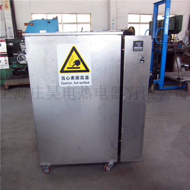 高溫電烤箱為內外雙層結構,殼體為角鋼薄鋼板,內外雙層殼體之間填充有纖維物質。高溫電烤箱使用的纖維物質能起到保溫的作用,形成可靠的保溫層。高溫電烤箱配置有熱風循環系統及溫度測量與控制系統。