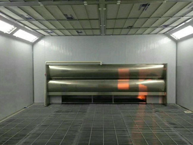 烤漆時,將風門調至烤漆位置,熱風循環,烤房內溫度迅速升高到預定干燥溫度(55℃-60℃)。風機將外部新鮮空氣進行初過濾后,與熱能轉換器發生熱交換后送至烤漆房頂部的氣室,再經過第二次過濾凈化,熱風經過風門的內循環作用,除吸進少量新鮮空氣外,絕大部分熱空氣又被繼續加熱利用,使得烤漆房內溫度逐步升高。當溫度達到設定的溫度時,燃燒器自動停止;當溫度下降到設置溫度時,風機 由于國內外品牌型號繁多:不同型號都大致可分為、通用型、中型、遠紅外。只是各自標準配備不同。目前最新型的為量子級烤漆房。