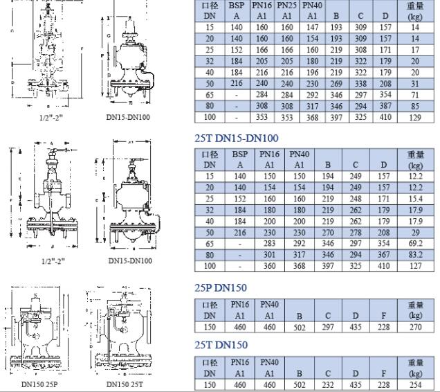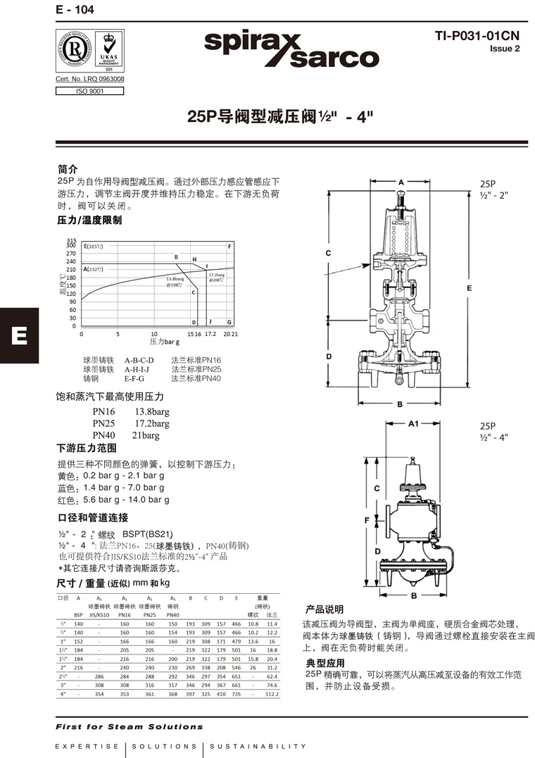 SpiraxSarco斯派莎克25P蒸汽減壓閥的技術參數: