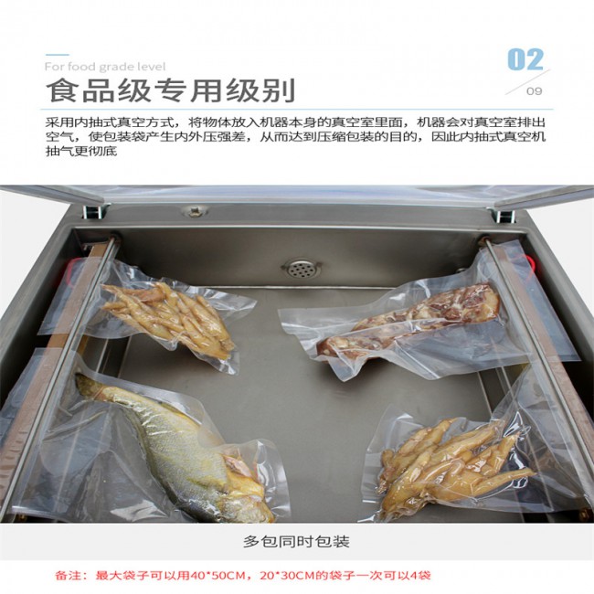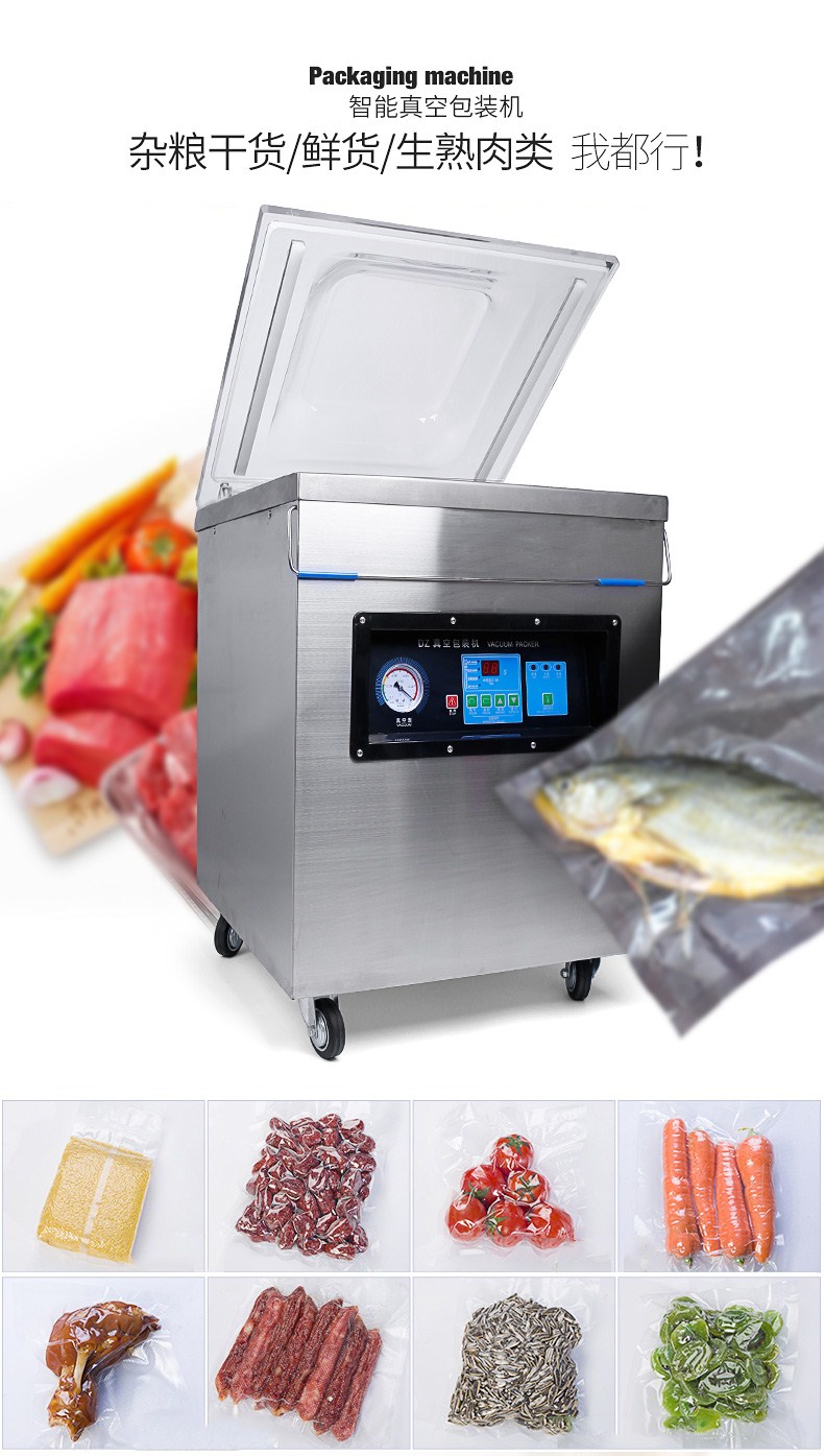 真空包裝機(jī)適用于食品行業(yè)可包裝火腿、肉類、魚干、雞鴨肉類、醬制品、調(diào)味品、果脯、糧食、豆制品、化學(xué)制品、藥材、農(nóng)產(chǎn)品、電子、五金零件等商品進(jìn)行真空后充惰性氣體包裝,經(jīng)抽真空包裝后的物品可防止氧化、霉變、蟲(chóng)蛀、受潮、延長(zhǎng)產(chǎn)品儲(chǔ)存期限。