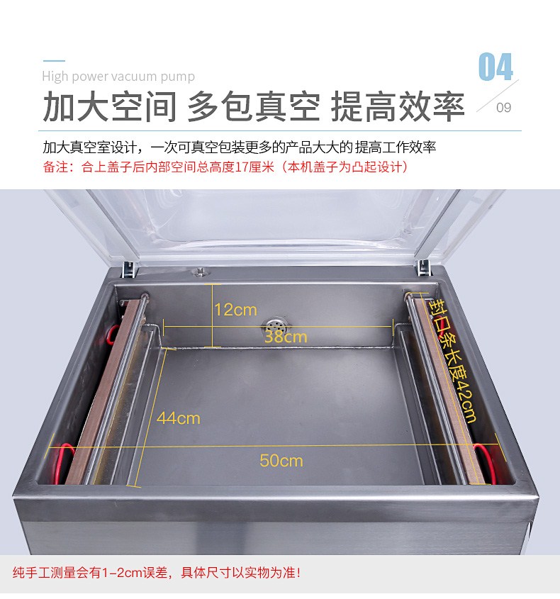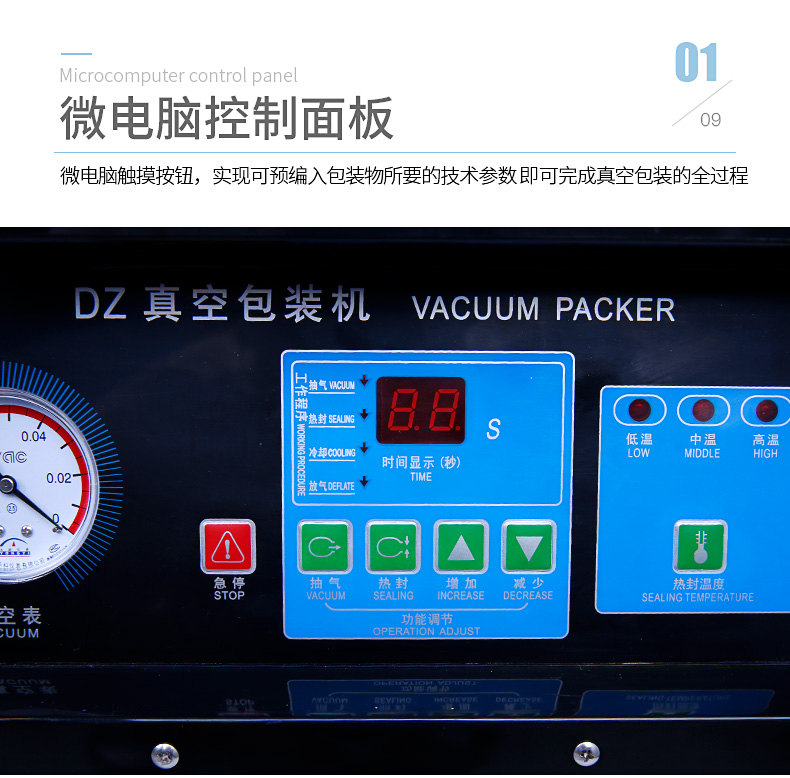 單室400真空包裝機(jī)為半自動(dòng)真空設(shè)備,只需按下真空蓋即自動(dòng)按程完成真空、封口、印字、冷卻、排氣的全過(guò)程。適用于各類食品、藥品、土特產(chǎn)、水產(chǎn)品、化工原料等各種固體、粉狀、糊狀、液體,電子產(chǎn)品(半導(dǎo)體、電路板、電子成品等)及機(jī)金屬加工件的真空包裝,以防潮、防氧化變色。經(jīng)過(guò)包裝的產(chǎn)品可防止氧化,霉變、蟲(chóng)蛀、受潮,可保質(zhì)、保鮮延長(zhǎng)產(chǎn)品儲(chǔ)存期限。