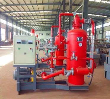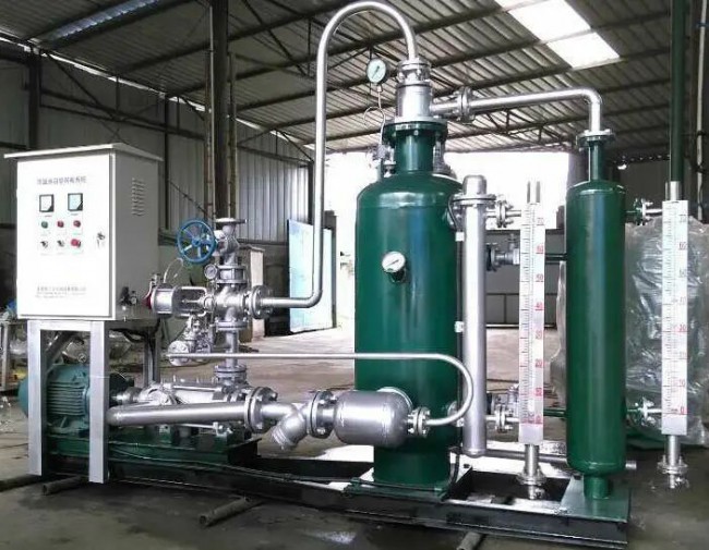 (5)結構簡單:集閃蒸罐、冷凝水快排裝置、壓力平衡裝置、液位變器、除污器、汽蝕消除器、蓄水箱為一體。一般情況蓄水箱平衡裝置壓力設備在0.1MPa以下,系統運行是能達到自動啟閉、自動報警、自動調壓及冷凝水泵自動切換等一系列智能化程序控制。設備整體性好、安裝維修方便。