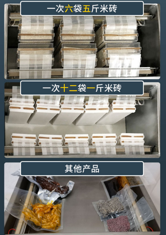 大米米磚真空包裝機 武漢大米米磚真空包裝機是加深型直空包裝機,自帶有多種不同大小的米磚模具,直空句裝后可以延長產品的保質期,起到耐氧化、防蟲蛀、霉變、防受潮等功能,是一款專為直空包裝大米米磚的機型產品。該直空包裝機是中小型大米生產廠家直空包裝的*機型。