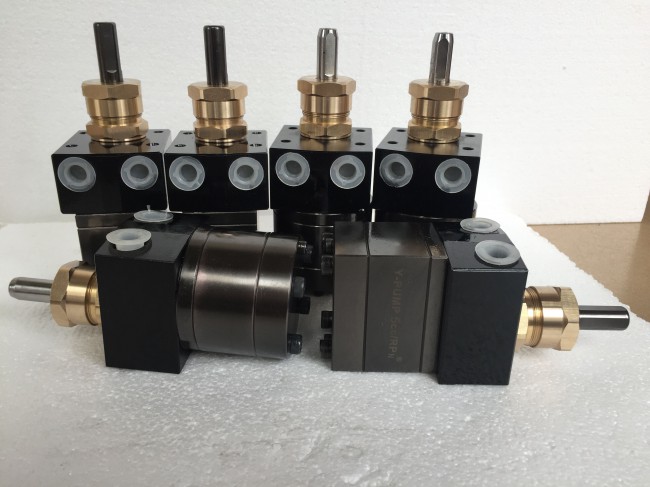 DISK齒輪油漆泵 涂料定量齒輪泵浦廣泛應用于自動化噴漆機和DISK圓盤式靜電噴涂機上。齒輪泵浦在電機驅動下源源不斷把涂料平穩定量輸送到作業區;沒有氣動泵脈動所造成涂料輸送不穩定及清洗不方便之缺點。盈暉涂料齒輪泵浦固定安裝在調速電機上,通過變頻器或調速器調節轉速快慢來實現控制涂料輸出流量大/小。驅動方式一般采用電機驅動。 大揚齒輪泵泵浦采用耐磨合金鋼及不銹鋼材料精制而成,該材料具有耐磨防銹;傳動軸選用耐磨耐腐蝕密封圈密封,有效防止由傳動軸所造成的滲漏;泵浦使用保養簡單換色方便快捷之優點。適用于各類帶顆粒性油漆、水性漆、氟碳漆、PU、UV、PE、銀粉油漆、油墨、膠水等化學液體定量穩壓輸送。 規格:1.5cc、3cc、5cc、6cc、10cc (流量)。(可代客戶定做泵浦及維修泵浦) 廣泛用于:金屬或木制門窗、樓梯扶手、機車、自行車、電動車、汽車、家電、電鍍噴油、小五金、樂器、電子、建筑材料等噴漆設備行業。 1泵浦安裝和使用方法 ①泵浦它是高密度的產品,裝配時嚴禁敲打泵浦軸心 (注意)免造成泵浦軸心崁入泵浦不會動彈 ②涂料入口(注)管路請隨時詳細清洗干凈,料管老舊時請隨時更新,勿留涂料殘渣,造成細微顆粒質進入泵浦壽命易減短。 ③新機運轉前請先確定調慢轉速,使泵浦壽命增長 ④新機運轉時如出口液體滲出,請鎖緊出口螺絲及進涂料管路 ⑤所有的機械零件它都會因隨著使用時間而磨損,造成壓力緩慢的減少,液體外漏情況也會慢慢增 2 新機故障及排除: ①請先檢查泵浦軸心是否有轉動,無轉動請檢查連軸器及連軸器軸心螺絲是否與馬達鎖緊,至使造成其無法轉動原因 ②確定涂料入口管路,出口螺絲是否有暢通(因阻塞,涂料易無法注入) ③通知維修人員 3功能知識小百科: ①您應該同時備有兩顆以上泵浦,以防損壞造成工作停頓損失 ②因為涂料稀,濃度,請提供涂料粘度資料與公司人員,以便提供適合之泵浦使用。 ③當液體稍微滲漏即表示,油封疲乏,請更換原廠油封,以免造成泵浦主機體更大磨損。