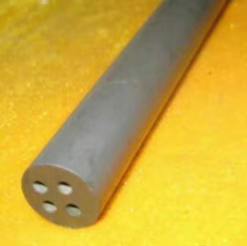 二硅化鉬是一種復合材料,其在1000℃以上高溫時有抗氧化性和耐腐蝕性,但低溫時較脆,另外超過1200℃高溫會喪失蠕變能力而限制了其作為結構材料的應用,但結合其他材料作為復合材料可以提高使用效果。二硅化鉬及以其為基礎的材料通常由燒結制得,二硅化鉬保護管與二硅化鉬鼓泡管就是通過等離子噴涂生產致密的整體式和復合形式制作的材料,為了快速冷卻,通常還會添加少量稀土元素,利用二硅化鉬的耐高溫性能的特點,將其制成二硅化鉬鼓泡管,被廣泛應用于玻璃行業中進行玻璃液提純。常用的二硅化鉬鼓泡管直徑為12,14,16,18,孔數一般有三孔,四孔,五孔,六孔,九孔,孔徑大約1毫米直徑左右,通過壓縮機注入空氣進入玻璃液,可以清除更加細微的雜質,使玻璃純度得到提高。