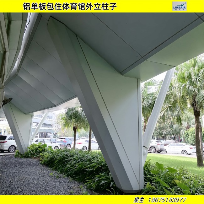 3.    包柱鋁單板利用鋁金屬可塑性強并具有金屬的剛性強度,借助現代化數控生產機械,經沖角、折彎、拱弧、成型、噴涂等二十多道工序加工而成。