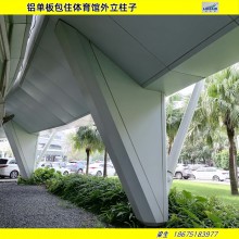 2.    包柱鋁單板作為惠州室內外各種造型柱子的定制產品,其環保性能及造型工藝性得到大量使用,可以加工成不同形狀,不同規格的包柱鋁單板產品。
