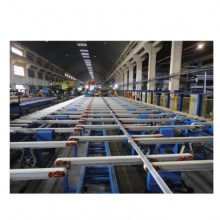 設備名稱:皮帶輸送式滑出臺; 組成部分:初出臺、冷卻風機、升降臺、冷卻臺挑料、冷卻臺、過橋、拉直機(單人操作)、儲存臺、儲存挑…